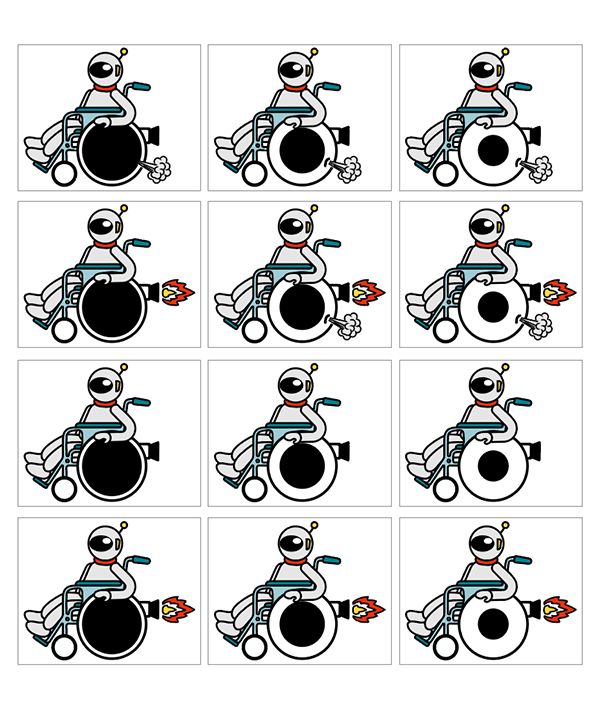 - Starting from scratch: While there are stock wheelchair illustrations and space-themed game assets, finding a ready-to-use rocket wheelchair was next to impossible.